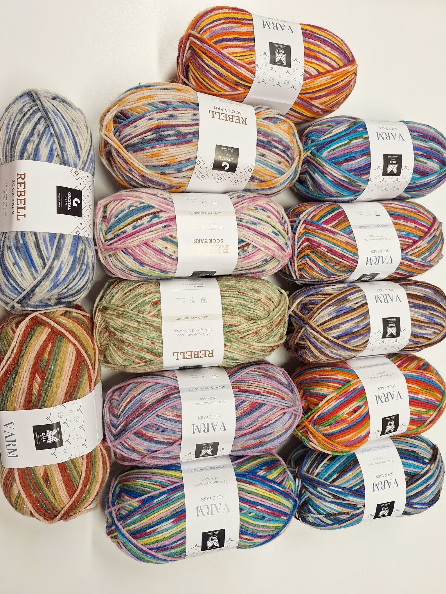 Varm eller Rebell? Samma kvalitet men lite olika färgställningar. Perfekta garnet till något tunnare sockor!!