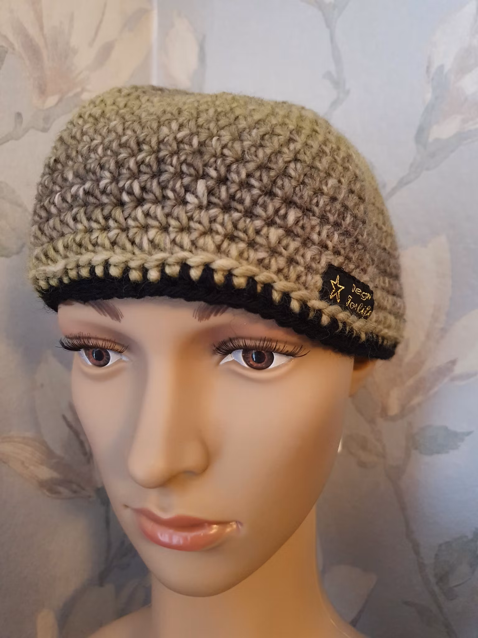 Cool året-runt mössa för alla som alltid vill ha mössa på, eller för den som bara vill ha lite värme just uppepå knoppen. Unisex. Onesize. Lägger sig löst på huvudet, inget som skaver. Prova! "Design for Life!