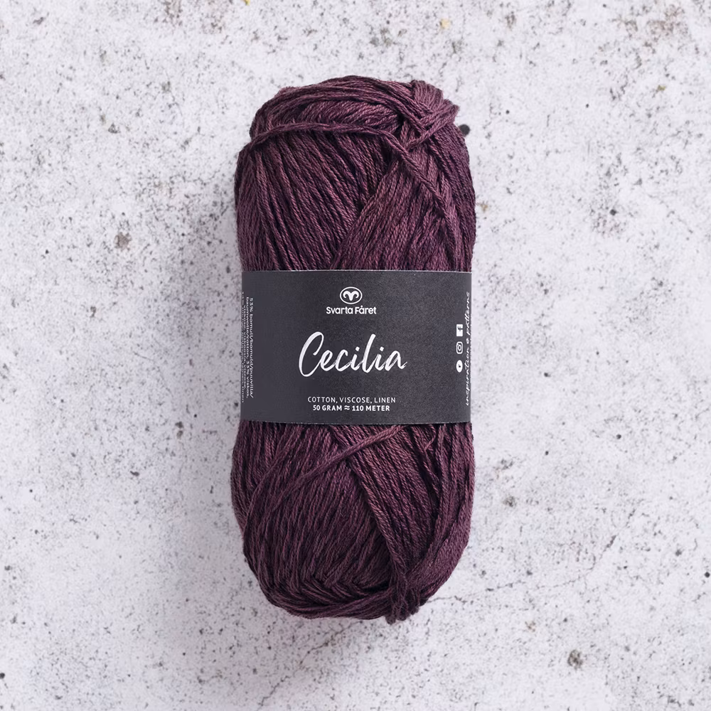 Cecilia från Svarta Fåret kommer i en härlig sommar blandning av bomull, viskos och lin. Garnet har en vacker struktur och är lätt melerat tack vare de olika fibrerna. Cecilia passar perfekt till svala och luftiga plagg som får ett väldigt snyggt fall.