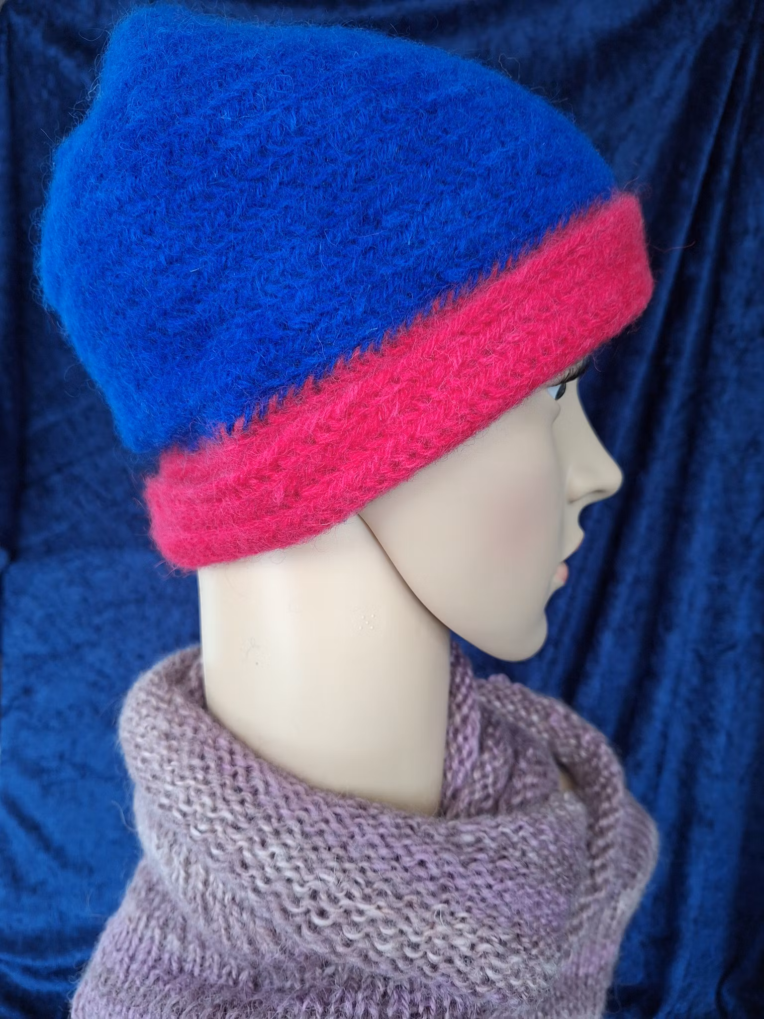 Gosig mössa av 100% svensk ull från Öland. Handfärgad i Lyckebo. Sydd i den urgamla tekniken Nålbindning som är känd från Vikingatid och Medeltid. Tovad efter tillverkning.