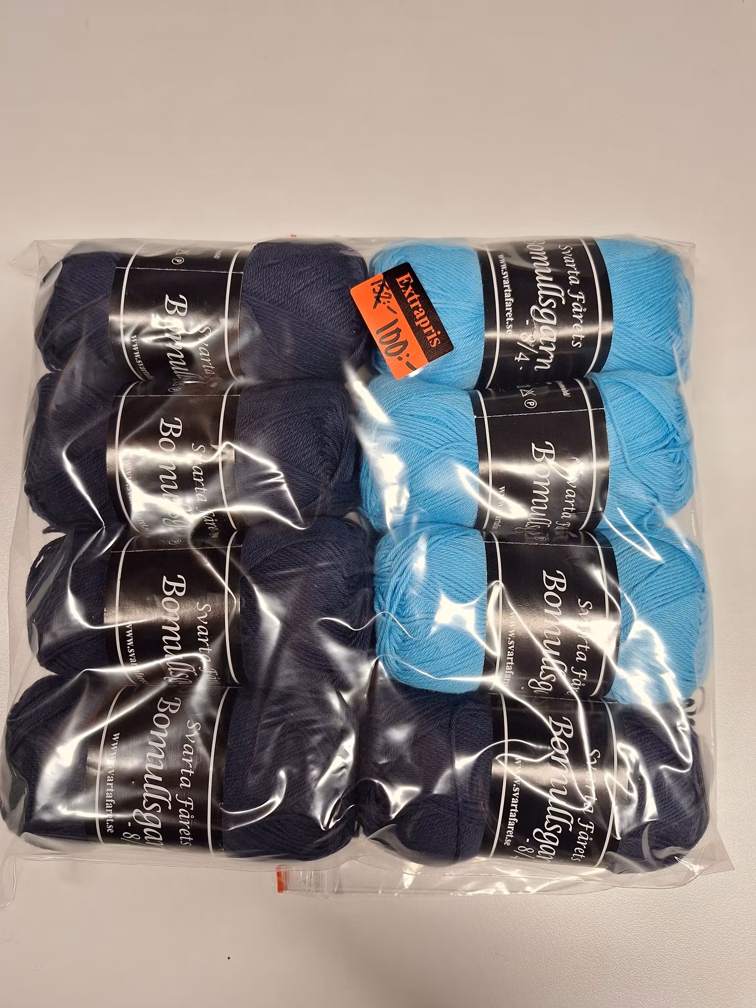 Svarta Fåret Bomullsgarn 8 nystan 100 kr I lager Lägg i korgen Lagersaldo: 1 Dela Information Recensioner 8 nystan Svarta Fåret Bomullsgarn á 50g Ljus turkos 3 st färg nr 424379Mörk blå/marin 5 st färg nr 434367
